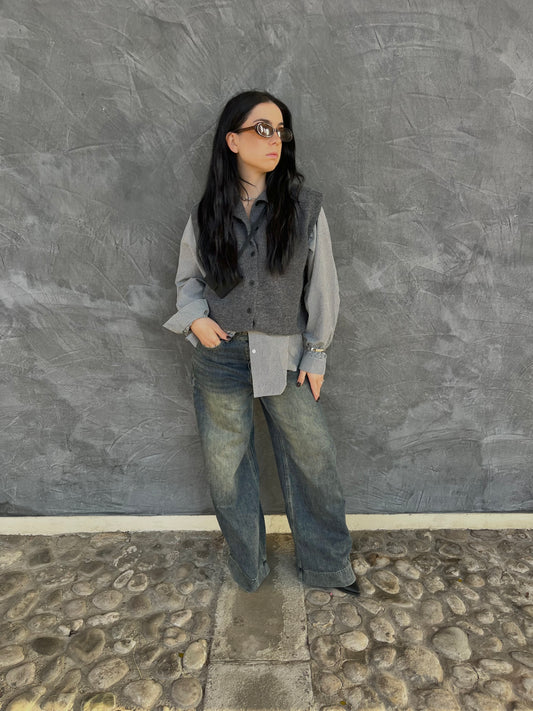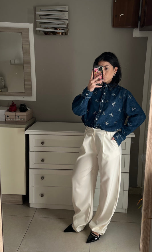 CAMICIA A RIGHE CON TASCHINO BEIGE