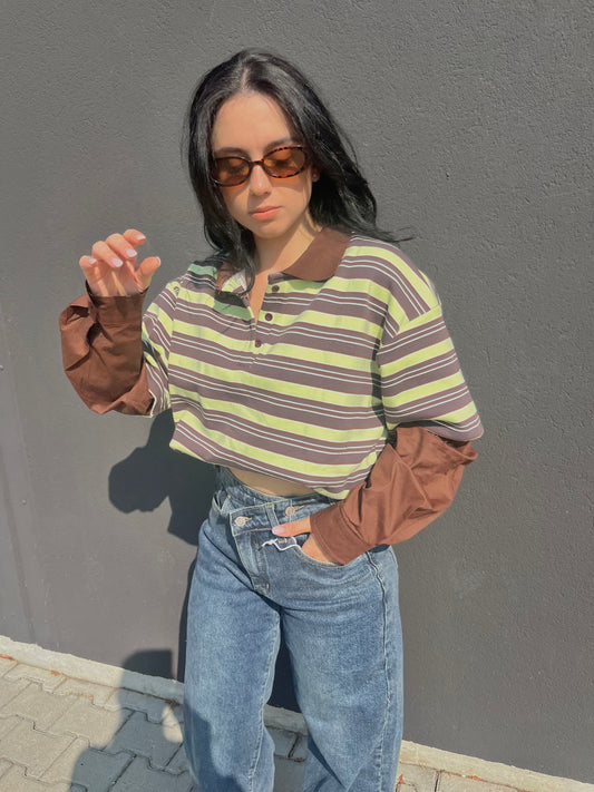 POLO STRIPES RETRO LIME/CIOCCOLATO