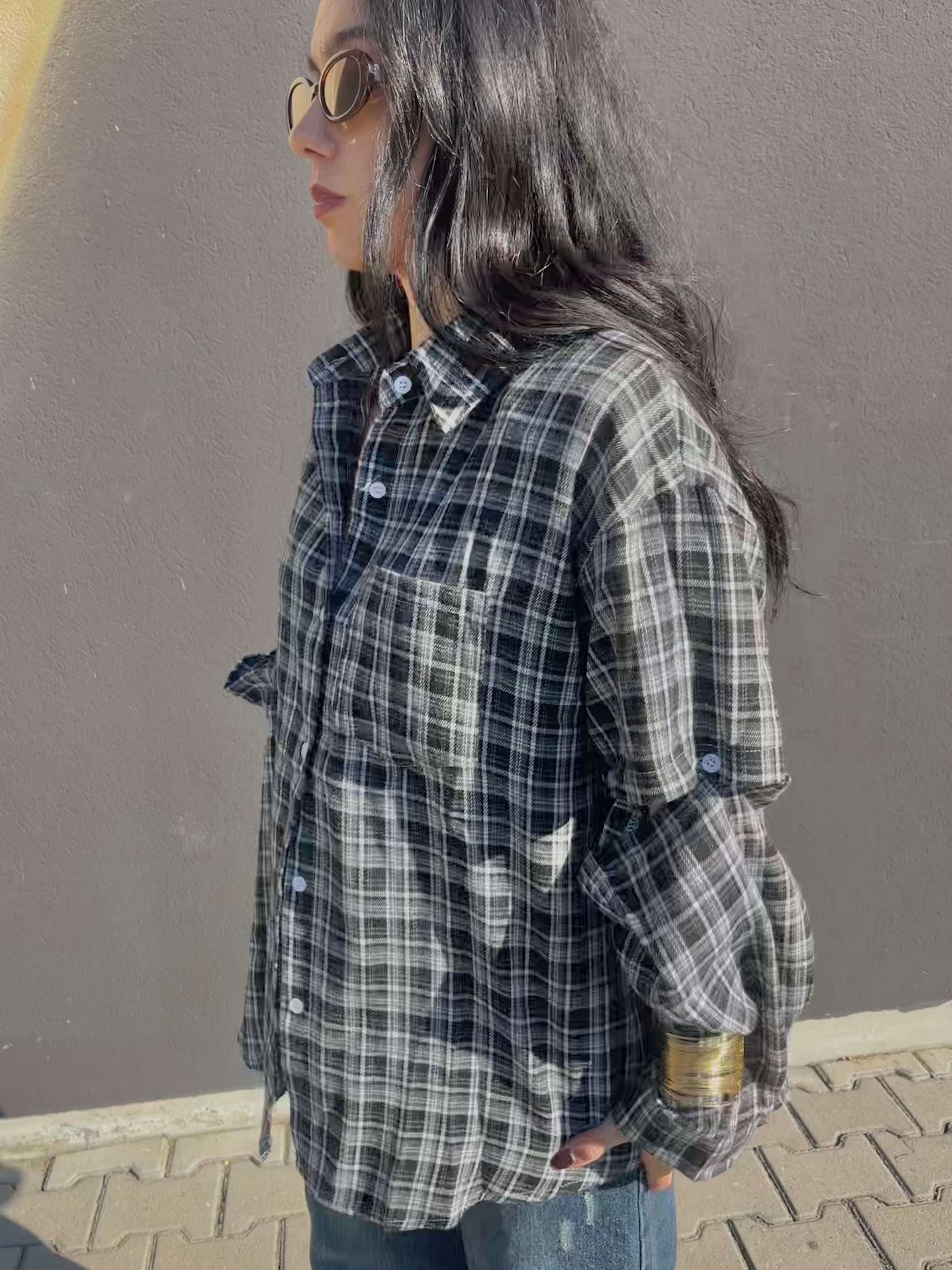 Camicia in flanella quadretti over size manica removibile con spallina taglia unica veste fino ad una 48