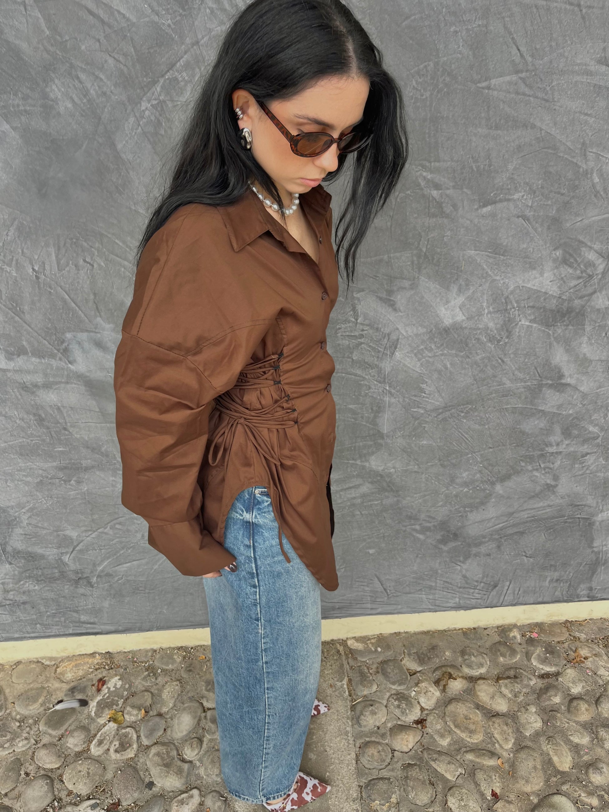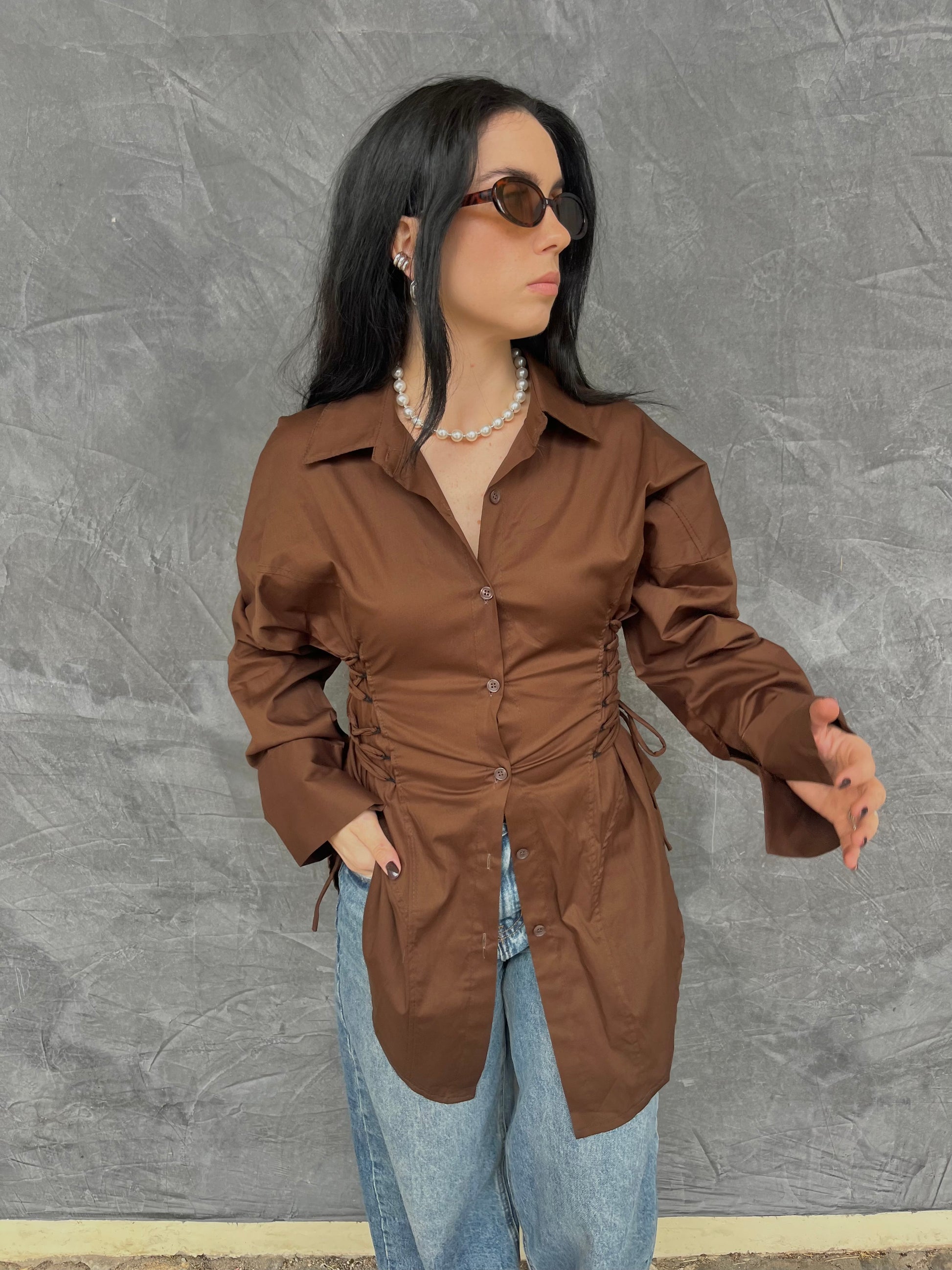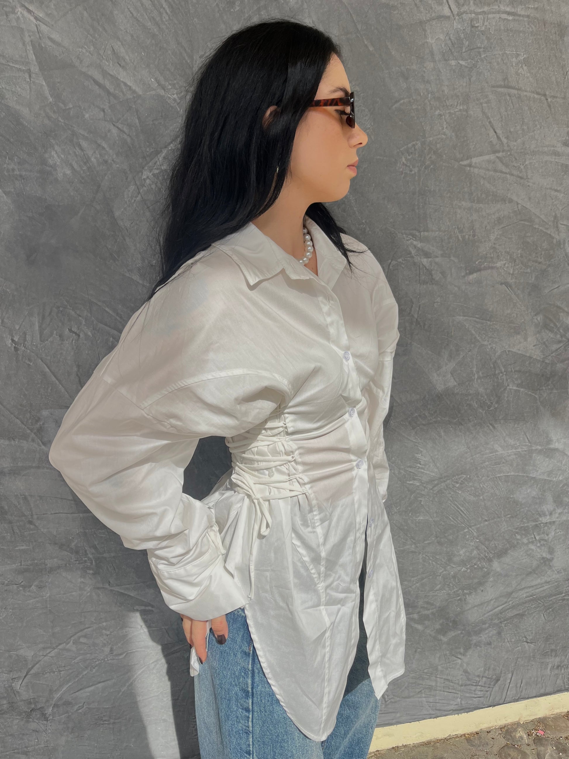 Camicia tg unica, zona della vita presenta un corsetto integrato con lacci laterali regolabili