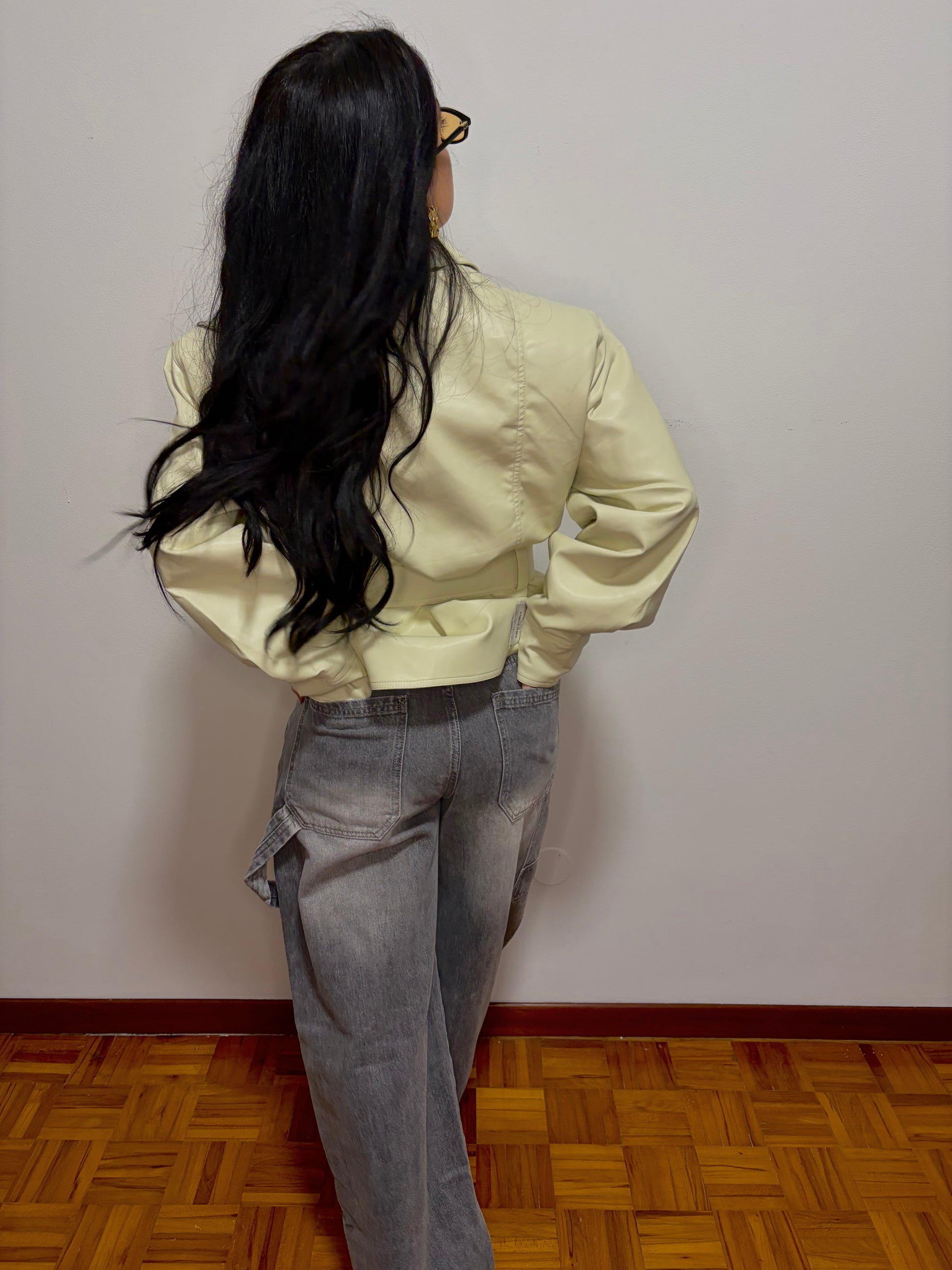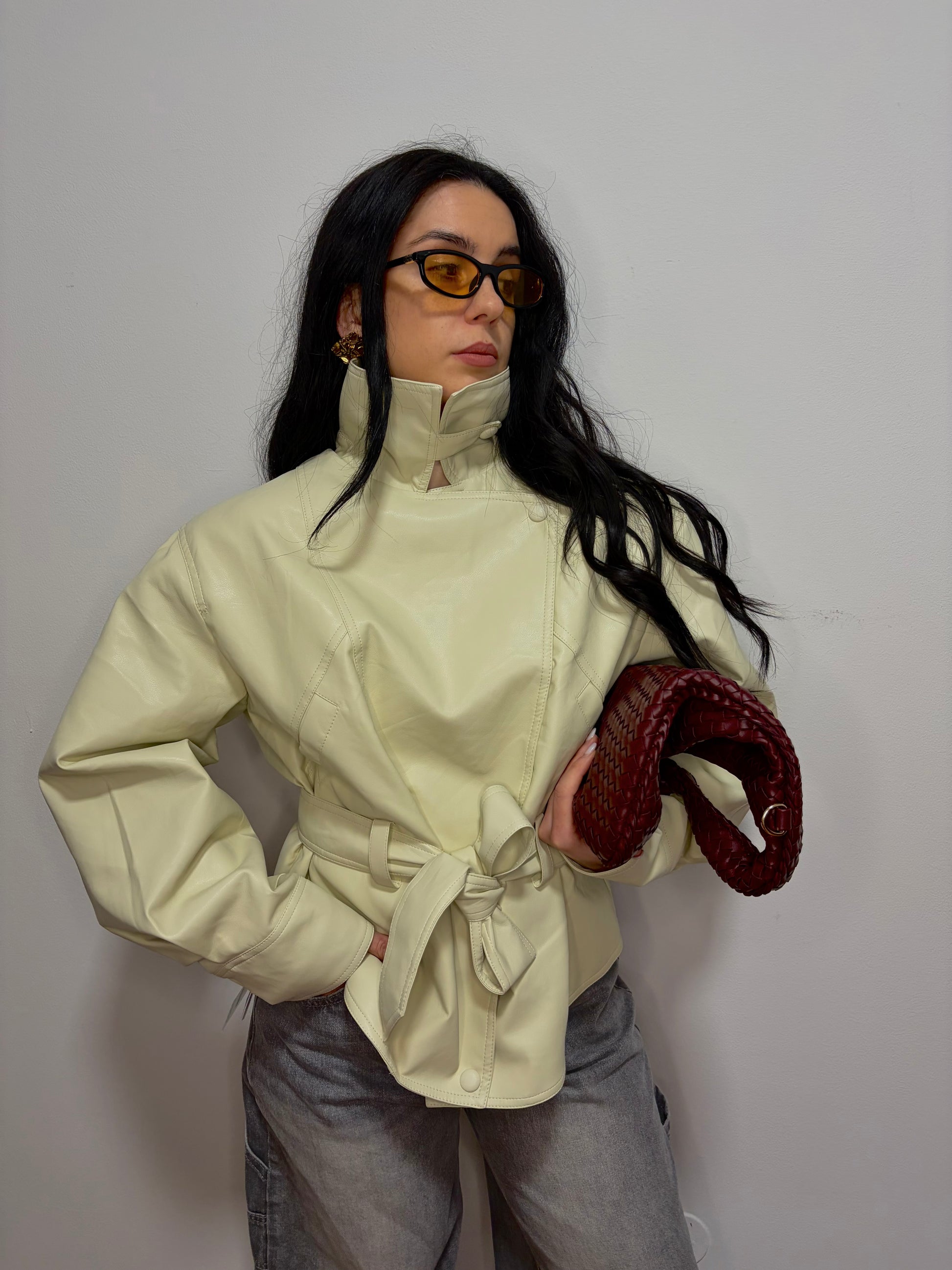 Chiodo in ecopelle collo alto, maniche lunghe chiusura frontale doppiopetto con passanti per cintura con cintura compresa tono su tono!