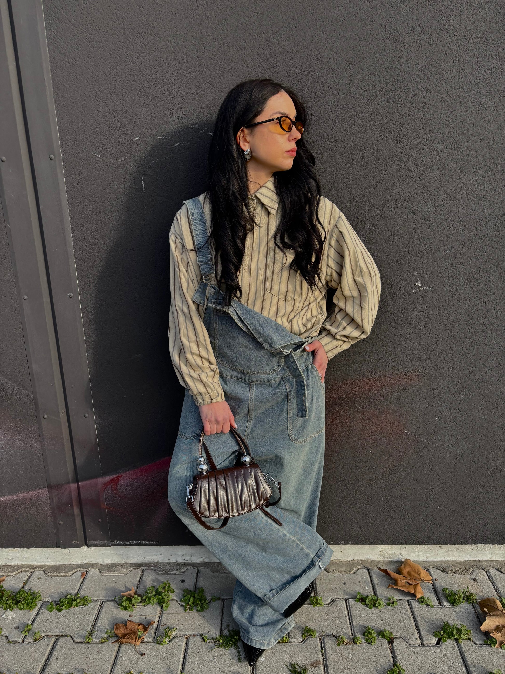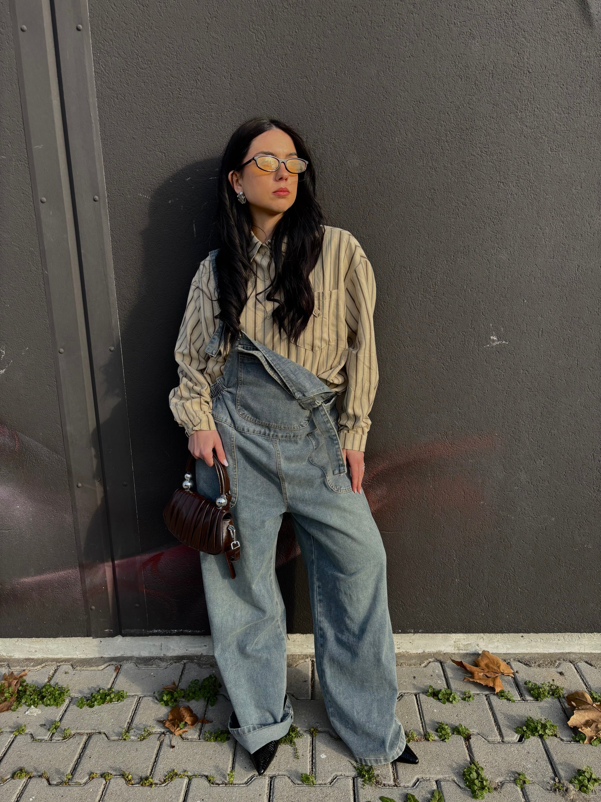 salopette tg unica veste over, tascone davanti e bretelle regolabili.