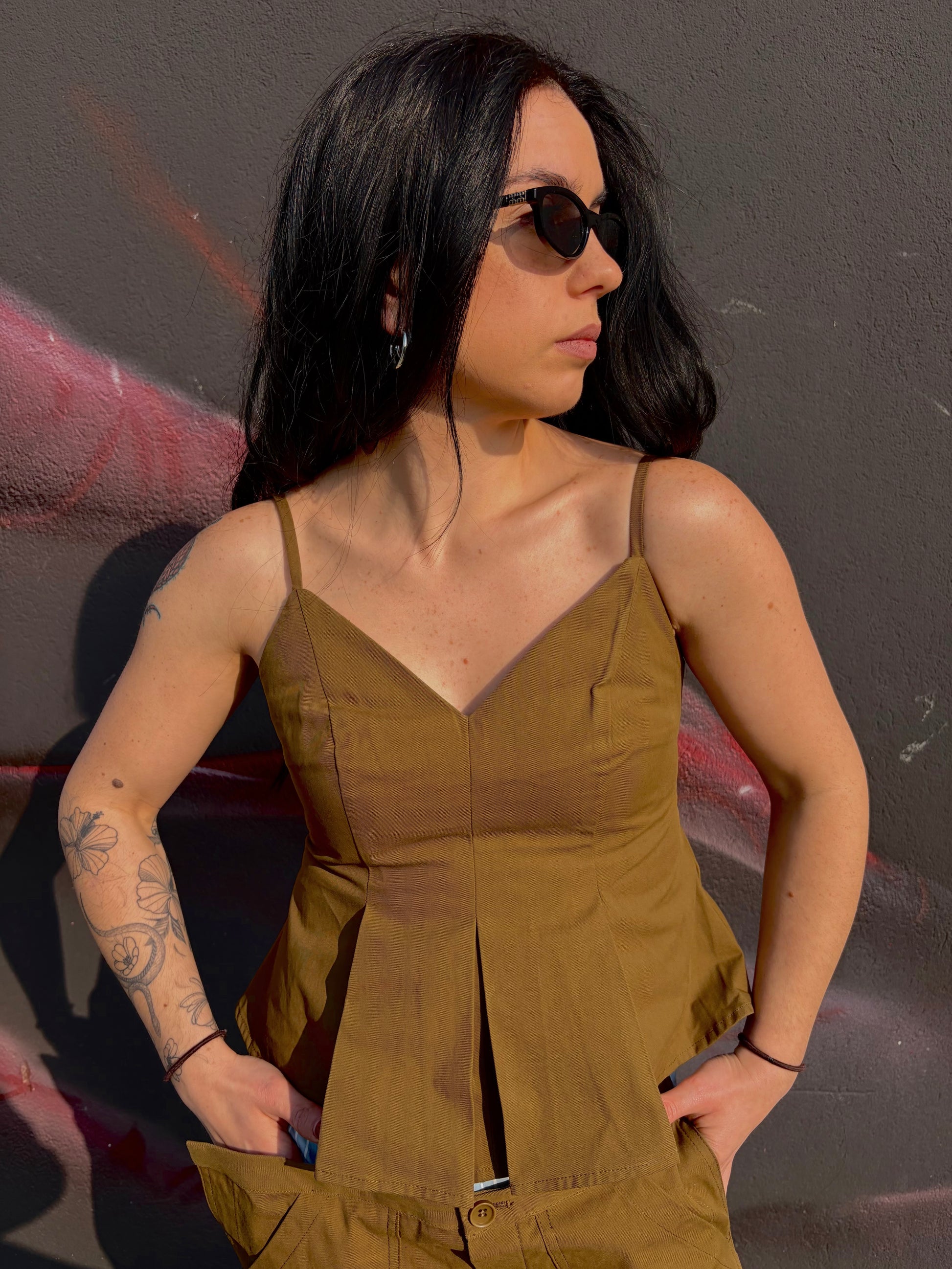 Spalline sottili regolabili. Fondo leggermente svasato.